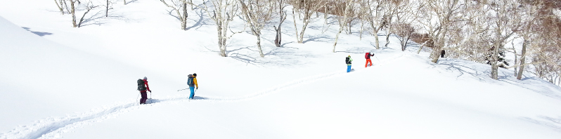 自分たちの足で滑降に適したポイントまで登っていきます。