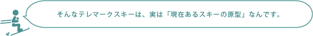 About telemark Skiテレマークと他のスキーの違いテレマークスキーと聞いて、