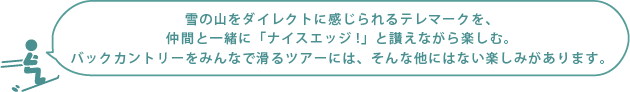 そんな登りも、テレマークでは山を楽しめる要素のひとつです。
