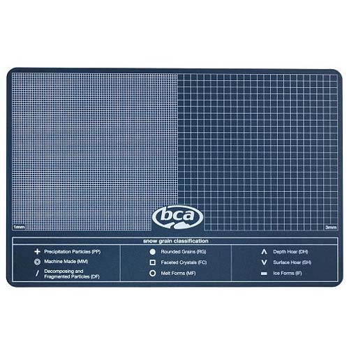 雪結晶粒の分類、傾斜角マップツール、積雪判定のための1mm9と3mmグリッド付きのカードです。