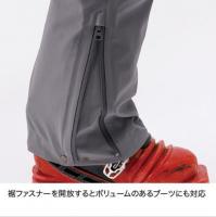 生地強度とストレッチ性を両立したバックカントリースキーヤーのための防水透湿アウターシェルビブパンツです。ヨコ134%、タテ143%の優れたストレッチ性を持つ70デニールの高強度ストレッチナイロンタフタを使用。両サイドには蒸れを一気に開放できるリンクベント®と、ブーツのボリュームに対応する裾口のファスナーを装備。雪の浸入を抑える腰までのビブスタイルに、排せつ時のストレスをクリアするスライダー式サスペンダーを採用。高い防水透湿性に加え、優れたストレッチ性を実現しているため、バックカントリースキーヤーのダイナミックな動きに合わせたストレスのない追従力を発揮します。