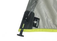 タープの2辺には紐の入ったスリーブがあり四隅のアジャスターを調整することで自在に幕体を絞り込むことができます。